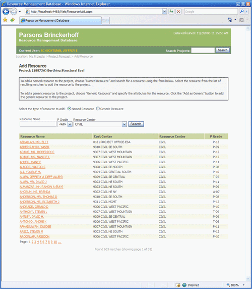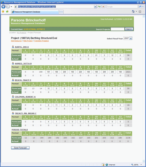 Parsons Brinckerhoff provides planning, engineering, and program and construction management services to both public and private sector clients. My role was to create a resource management application to forecast resource revenue.